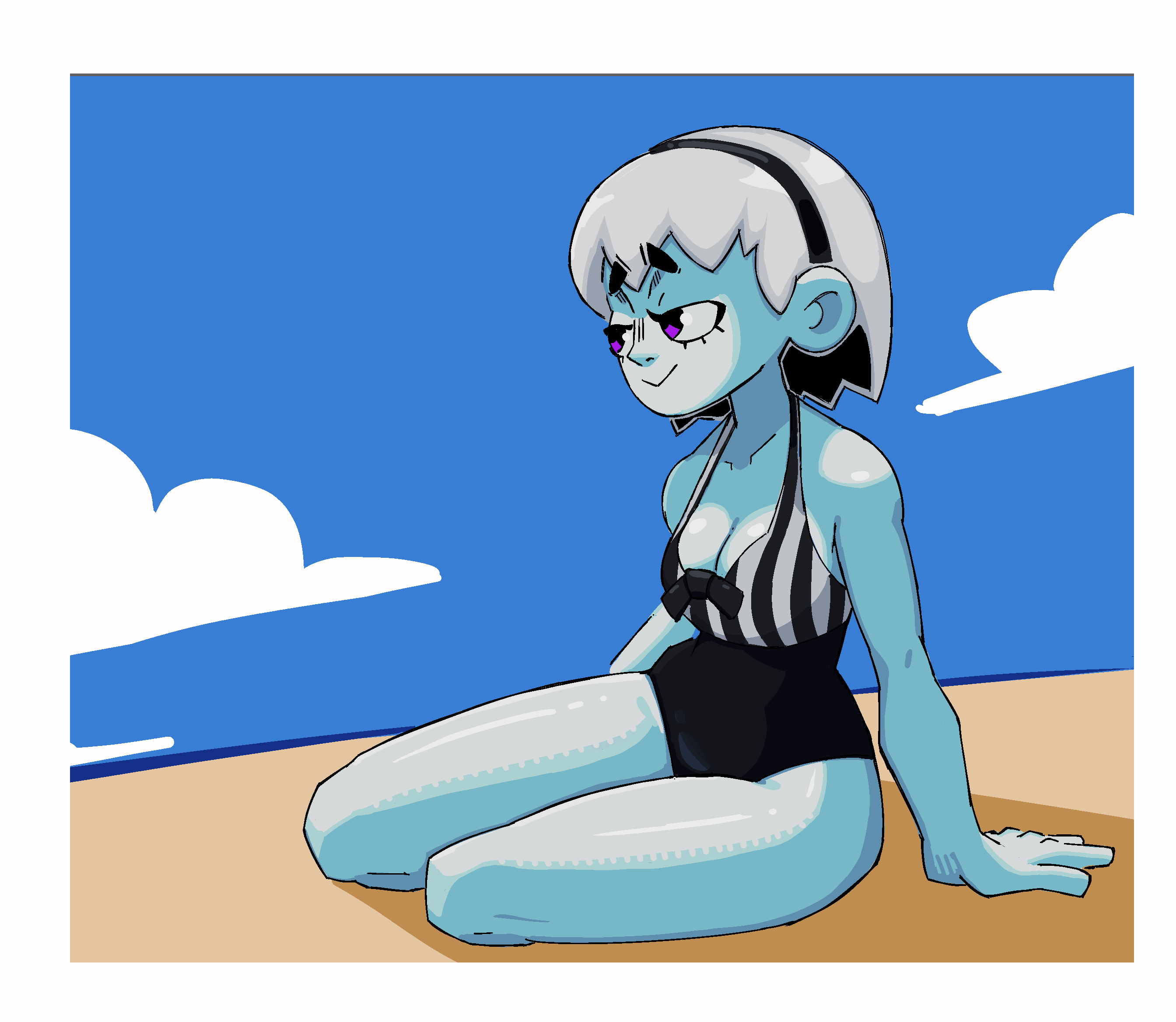 2025 casual clouds fashion fullres jaggy_lines ocean rose_lalonde sitting solo summer swimsuit vhorgeus
