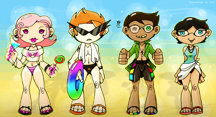 alpha_kids dirk_strider jake_english jane_crocker ninetydrops ocean roxy_lalonde summer swimsuit
