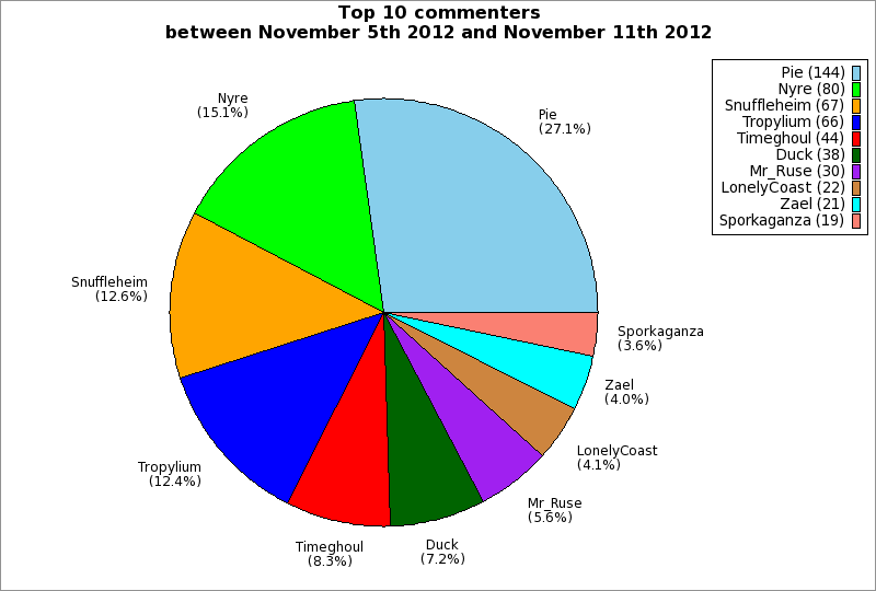 | Top 10 commenters between November 5th 2012 and November 11th 2012 | ||