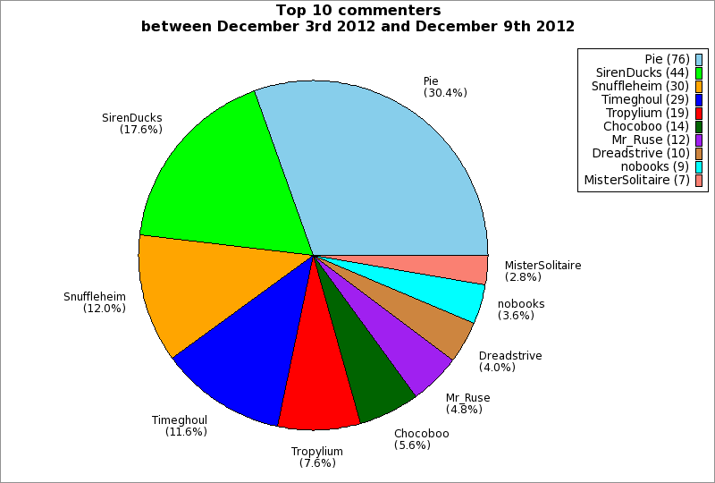 | Top 10 commenters between December 3rd 2012 and December 9th 2012 | ||