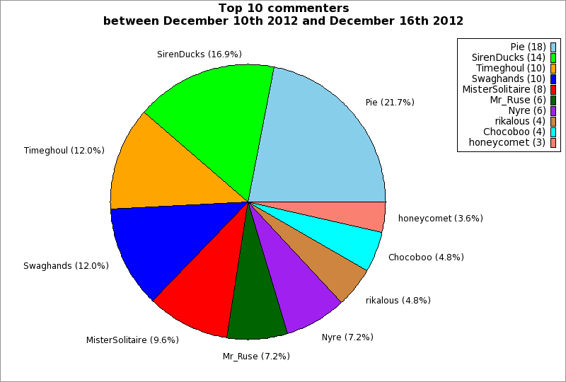 | Top 10 commenters between December 10th 2012 and December 16th 2012 | ||