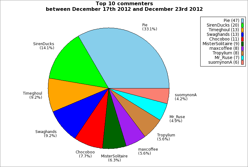 | Top 10 commenters between December 17th 2012 and December 23rd 2012 | ||