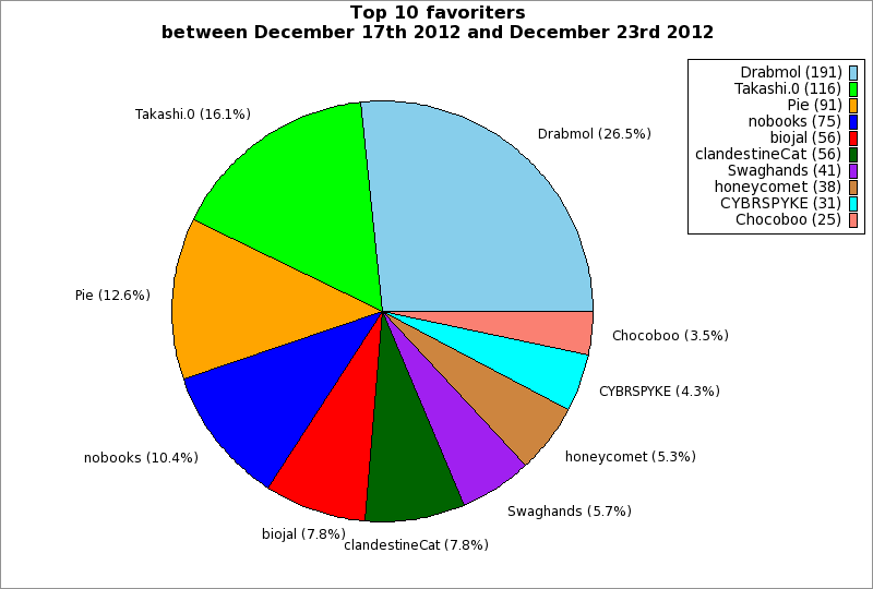 | Top 10 favoriters between December 17th 2012 and December 23rd 2012 | ||