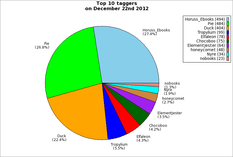 | Top 10 taggers on December 22nd 2012 | ||