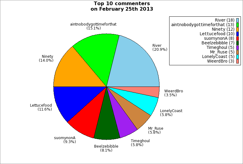 | Top 10 commenters on February 25th 2013 | ||