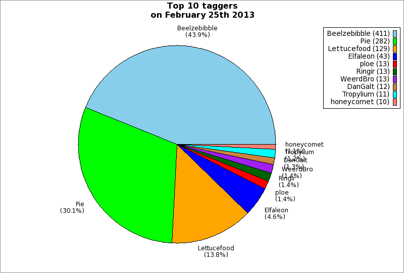 | Top 10 taggers on February 25th 2013 | ||