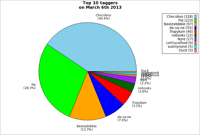 | Top 10 taggers on March 6th 2013 | ||