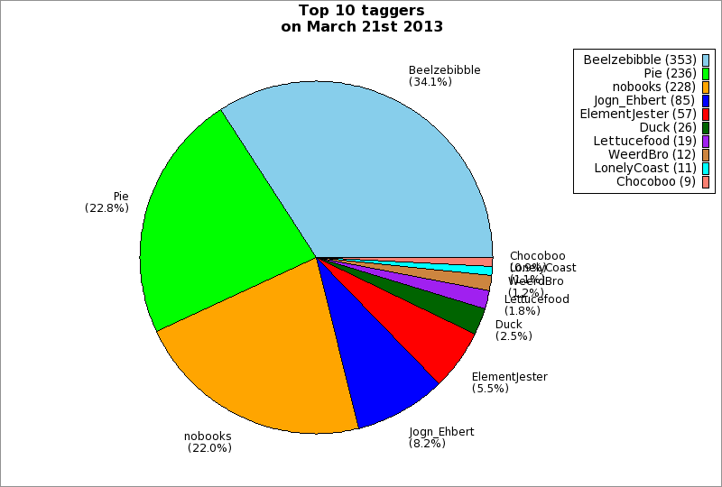 | Top 10 taggers on March 21st 2013 | ||