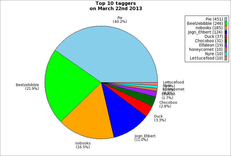 | Top 10 taggers on March 22nd 2013 | ||