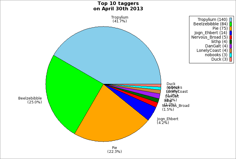 | Top 10 taggers on April 30th 2013 | ||