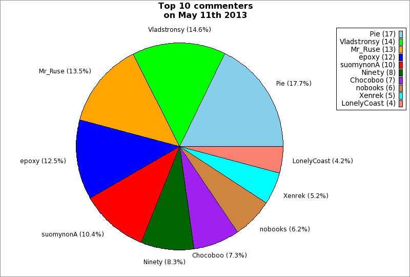 | Top 10 commenters on May 11th 2013 | ||