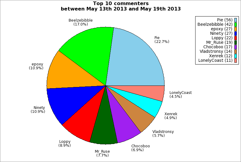 | Top 10 commenters between May 13th 2013 and May 19th 2013 | ||