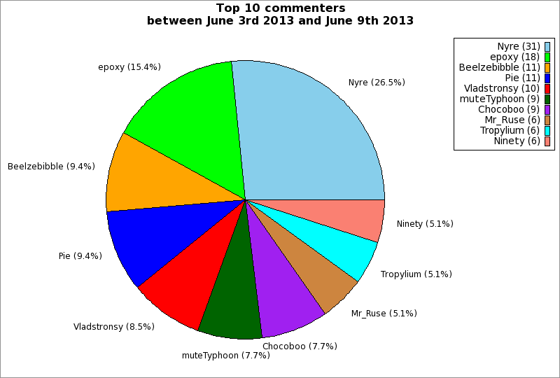 | Top 10 commenters between June 3rd 2013 and June 9th 2013 | ||