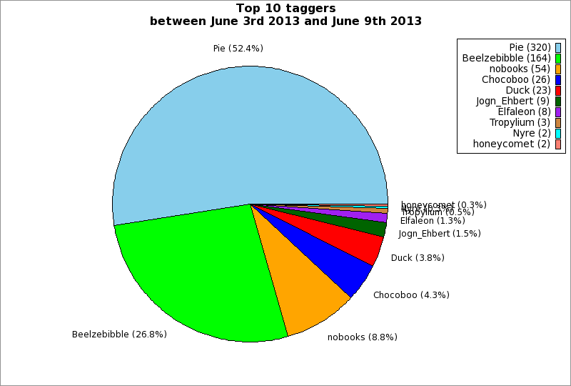 | Top 10 taggers between June 3rd 2013 and June 9th 2013 | ||