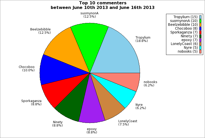 | Top 10 commenters between June 10th 2013 and June 16th 2013 | ||