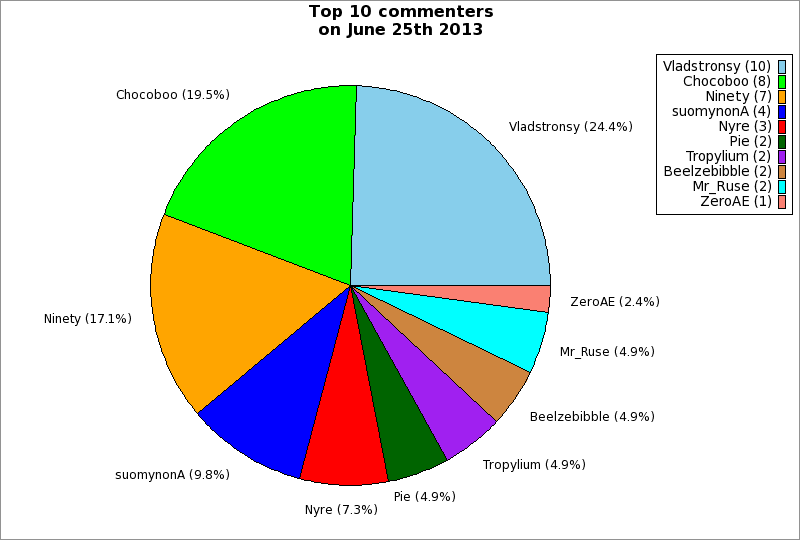 | Top 10 commenters on June 25th 2013 | ||