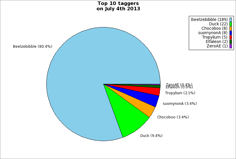 | Top 10 taggers on July 4th 2013 | ||