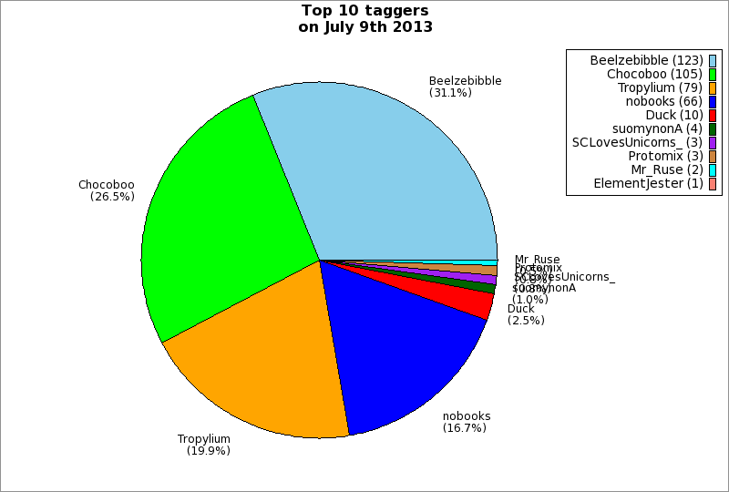 | Top 10 taggers on July 9th 2013 | ||