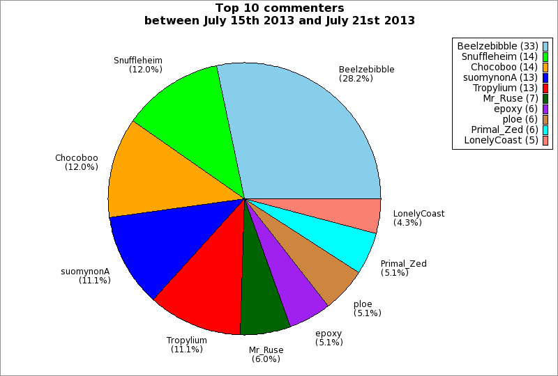 | Top 10 commenters between July 15th 2013 and July 21st 2013 | ||