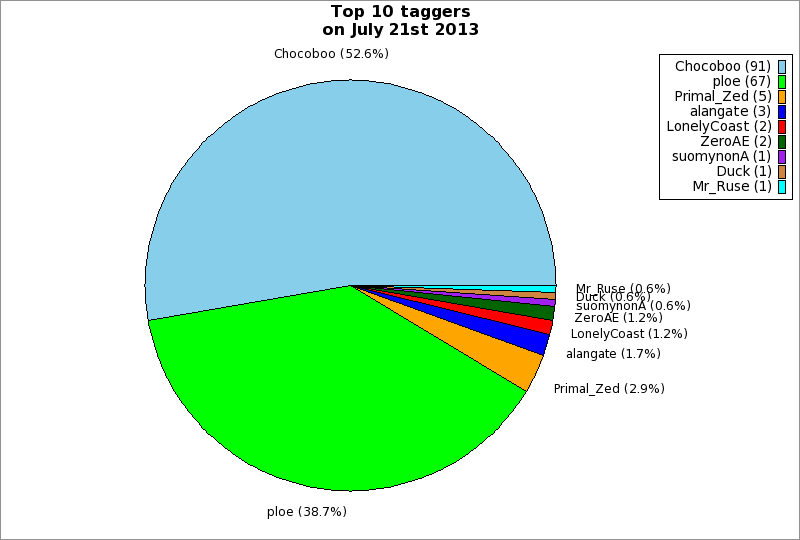 | Top 10 taggers on July 21st 2013 | ||