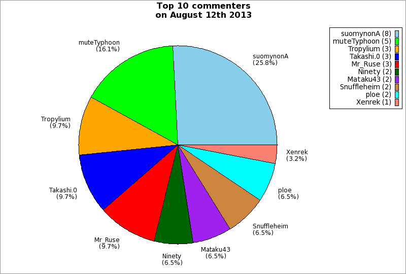 | Top 10 commenters on August 12th 2013 | ||