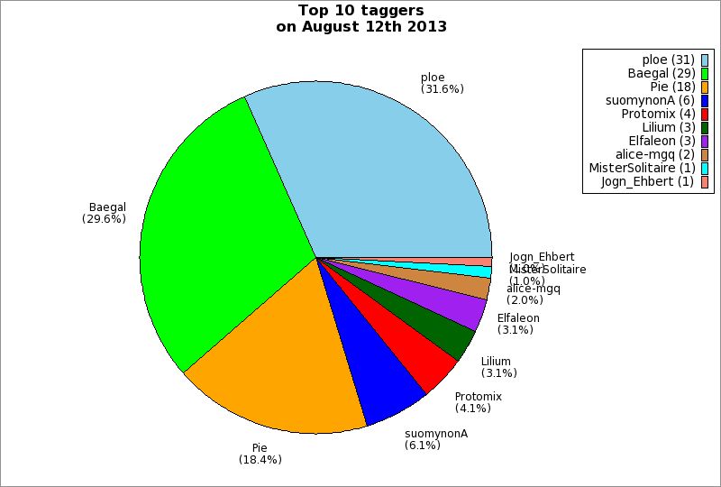 | Top 10 taggers on August 12th 2013 | ||