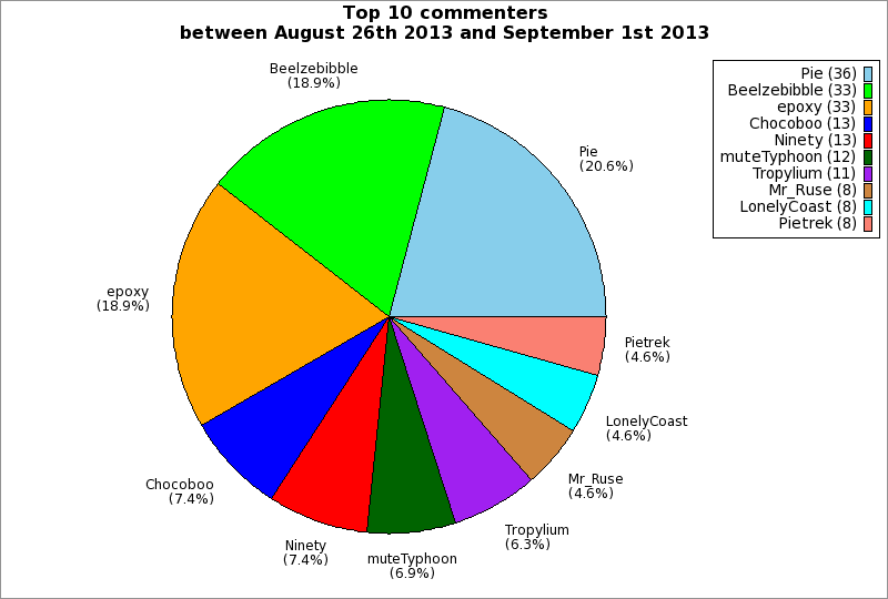 | Top 10 commenters between August 26th 2013 and September 1st 2013 | ||
