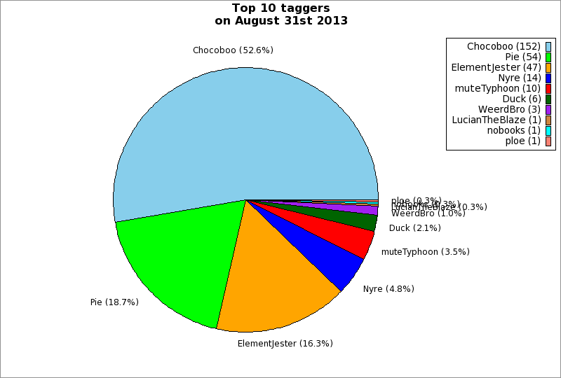 | Top 10 taggers on August 31st 2013 | ||