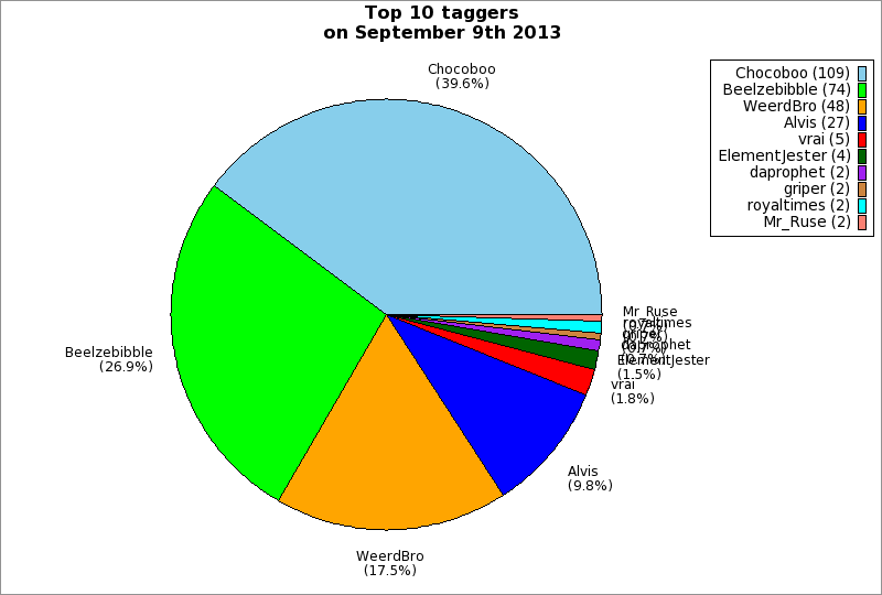 | Top 10 taggers on September 9th 2013 | ||