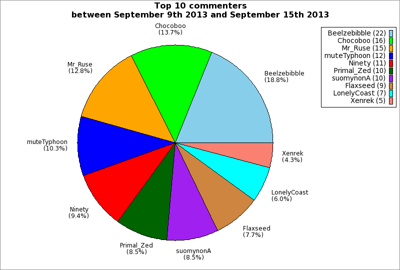 | Top 10 commenters between September 9th 2013 and September 15th 2013 | ||