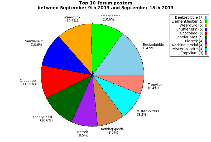 | Top 10 forum posters between September 9th 2013 and September 15th 2013 | ||