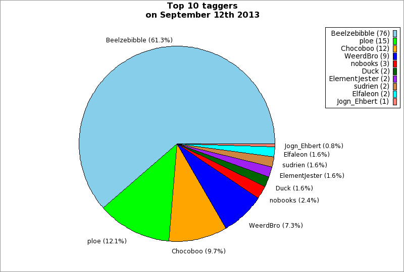 | Top 10 taggers on September 12th 2013 | ||