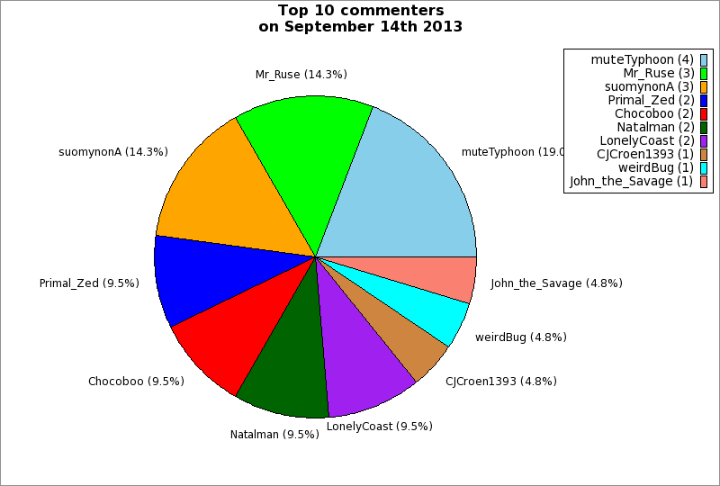 | Top 10 commenters on September 14th 2013 | ||