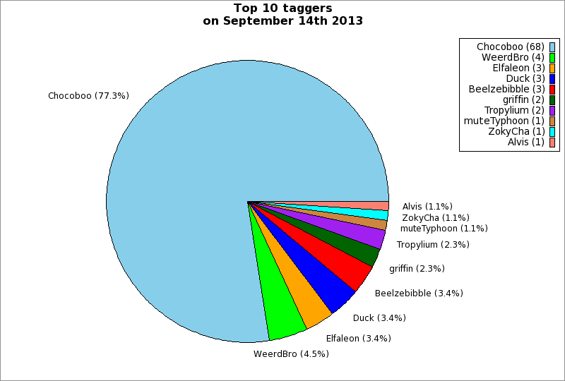 | Top 10 taggers on September 14th 2013 | ||