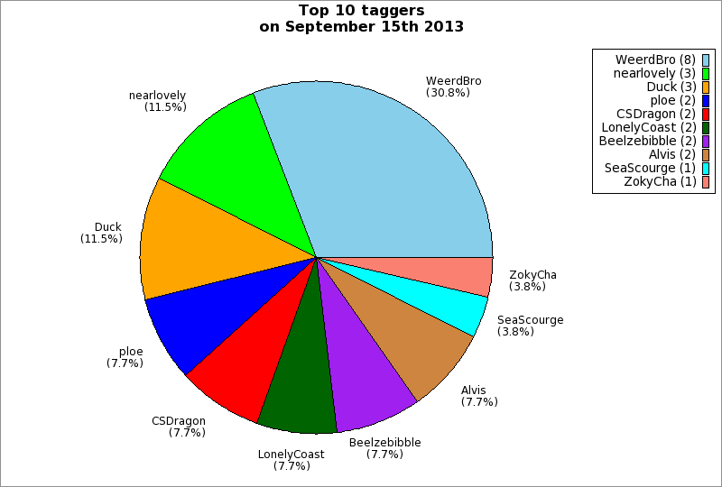 | Top 10 taggers on September 15th 2013 | ||