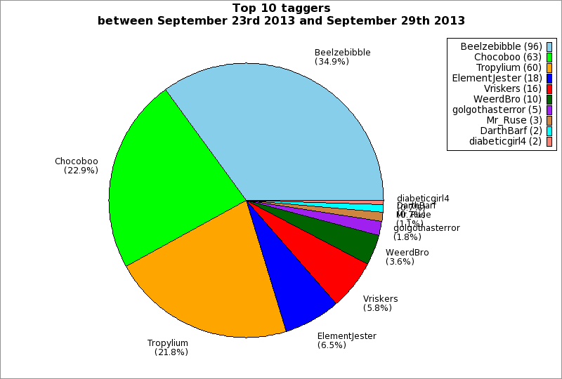 | Top 10 taggers between September 23rd 2013 and September 29th 2013 | ||
