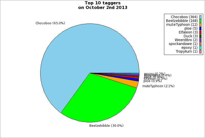 | Top 10 taggers on October 2nd 2013 | ||