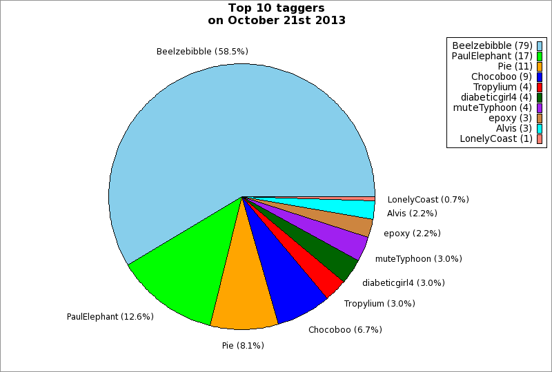 | Top 10 taggers on October 21st 2013 | ||