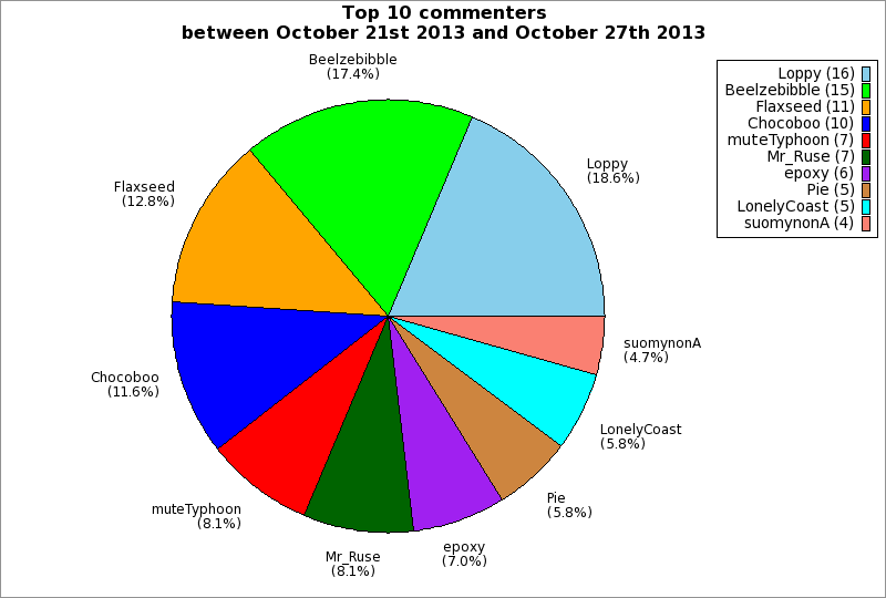 | Top 10 commenters between October 21st 2013 and October 27th 2013 | ||