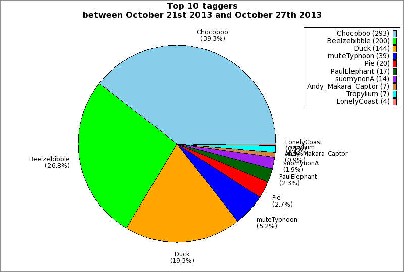 | Top 10 taggers between October 21st 2013 and October 27th 2013 | ||