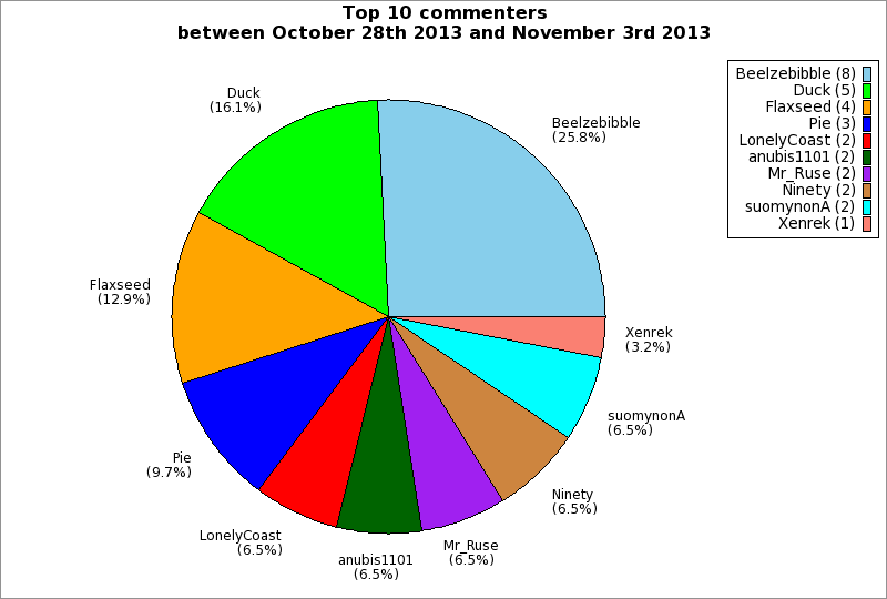 | Top 10 commenters between October 28th 2013 and November 3rd 2013 | ||