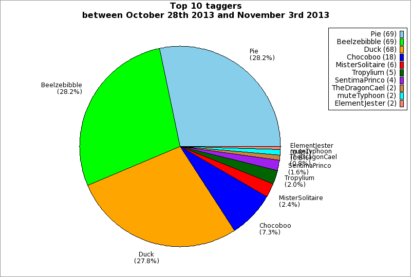 | Top 10 taggers between October 28th 2013 and November 3rd 2013 | ||