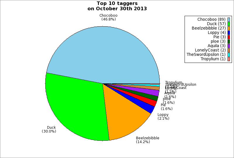 | Top 10 taggers on October 30th 2013 | ||