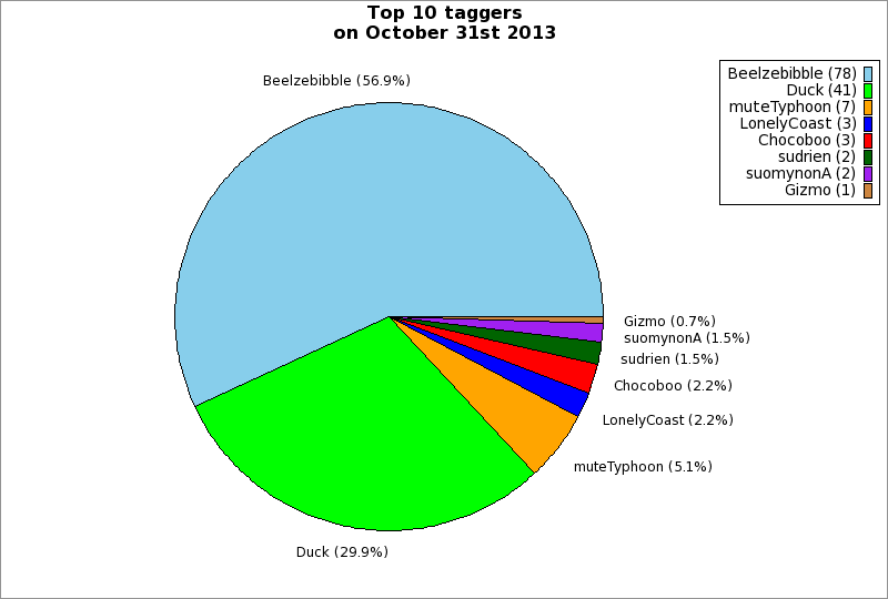 | Top 10 taggers on October 31st 2013 | ||