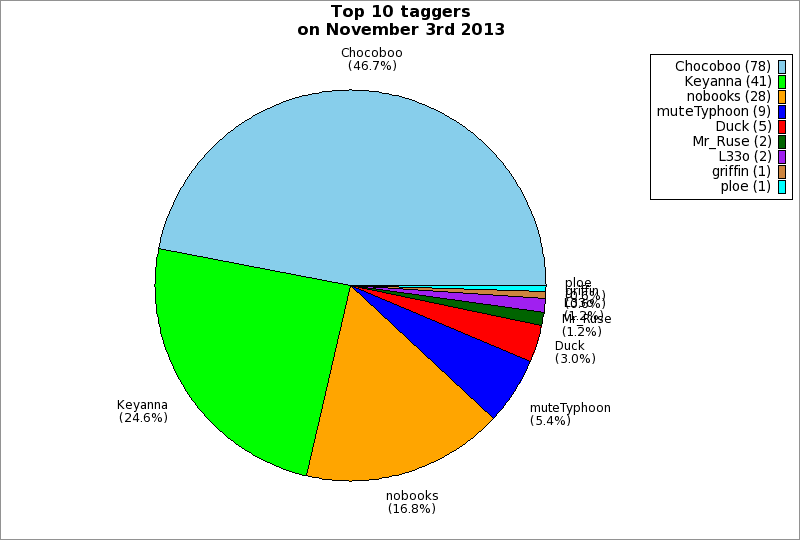 | Top 10 taggers on November 3rd 2013 | ||