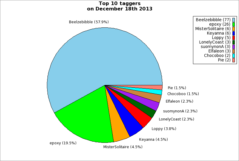 | Top 10 taggers on December 18th 2013 | ||