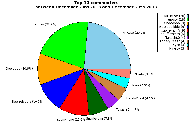 | Top 10 commenters between December 23rd 2013 and December 29th 2013 | ||