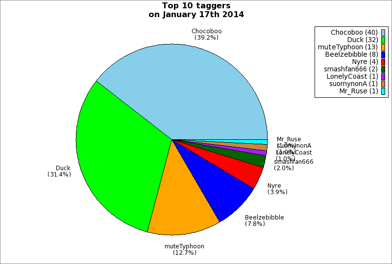 | Top 10 taggers on January 17th 2014 | ||