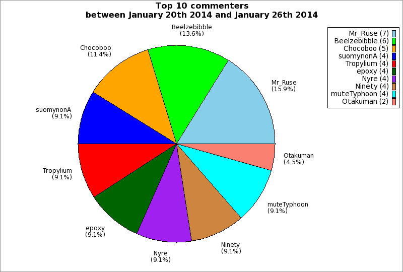 | Top 10 commenters between January 20th 2014 and January 26th 2014 | ||