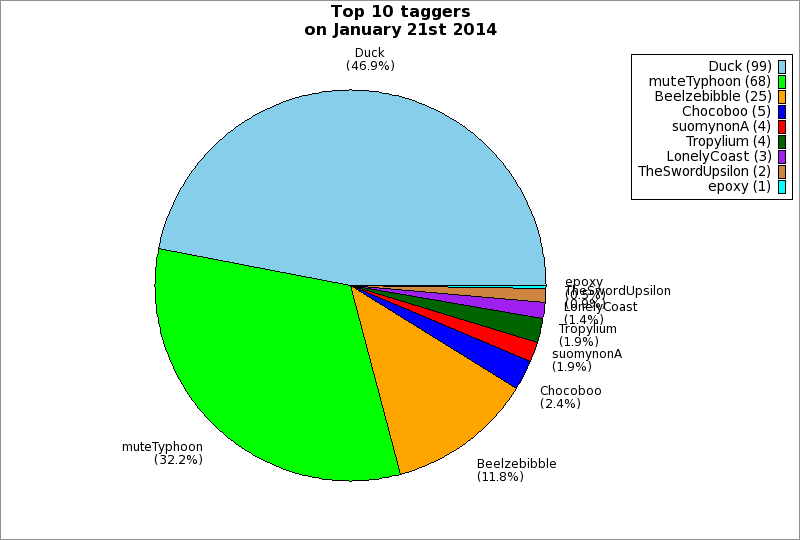 | Top 10 taggers on January 21st 2014 | ||